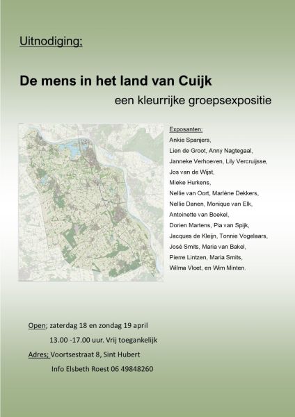 Cursisten van Elsbeth Roest houden hun jaarlijkse expositie op zaterdag 18 en zondag 19 april van 13- 17.00 uur, Voortsestraat 8, Sint Hubert. De toegang is gratis.